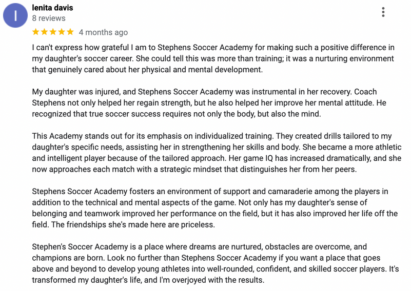 I am the Founder and Head Development Coach at Stephens Soccer Academy. Our academy focuses on developing top-tier strikers and attackers who play vital roles in soccer. Our mission is to cultivate players who possess exceptional football vision and sportsmanship while being tactically and technically proficient.